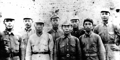 参加过长征的涂通今、刘夕青、朱剑鸣等部分校友1936年在甘肃庆阳合影留念。中国医科大学提供