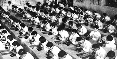 1945年11月,中国医科大学奉命从延安出发,赴东北办学,1946年7月到达兴山(位于今黑龙江鹤岗)。图为兴山办学期间,学生在上病理实习课。中国医科大学提供