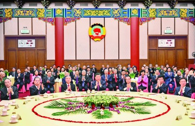 全国工商联主席高云龙代表各民主党派中央、全国工商联和无党派人士讲话,表示将更加紧密地团结在以习近平同志为核心的中共中央周围,协力新时代,携手新征程,共促新发展,为人民过上更加幸福美好的生活,为夺取新时代中国特色社会主义伟大胜利作出更大贡献。