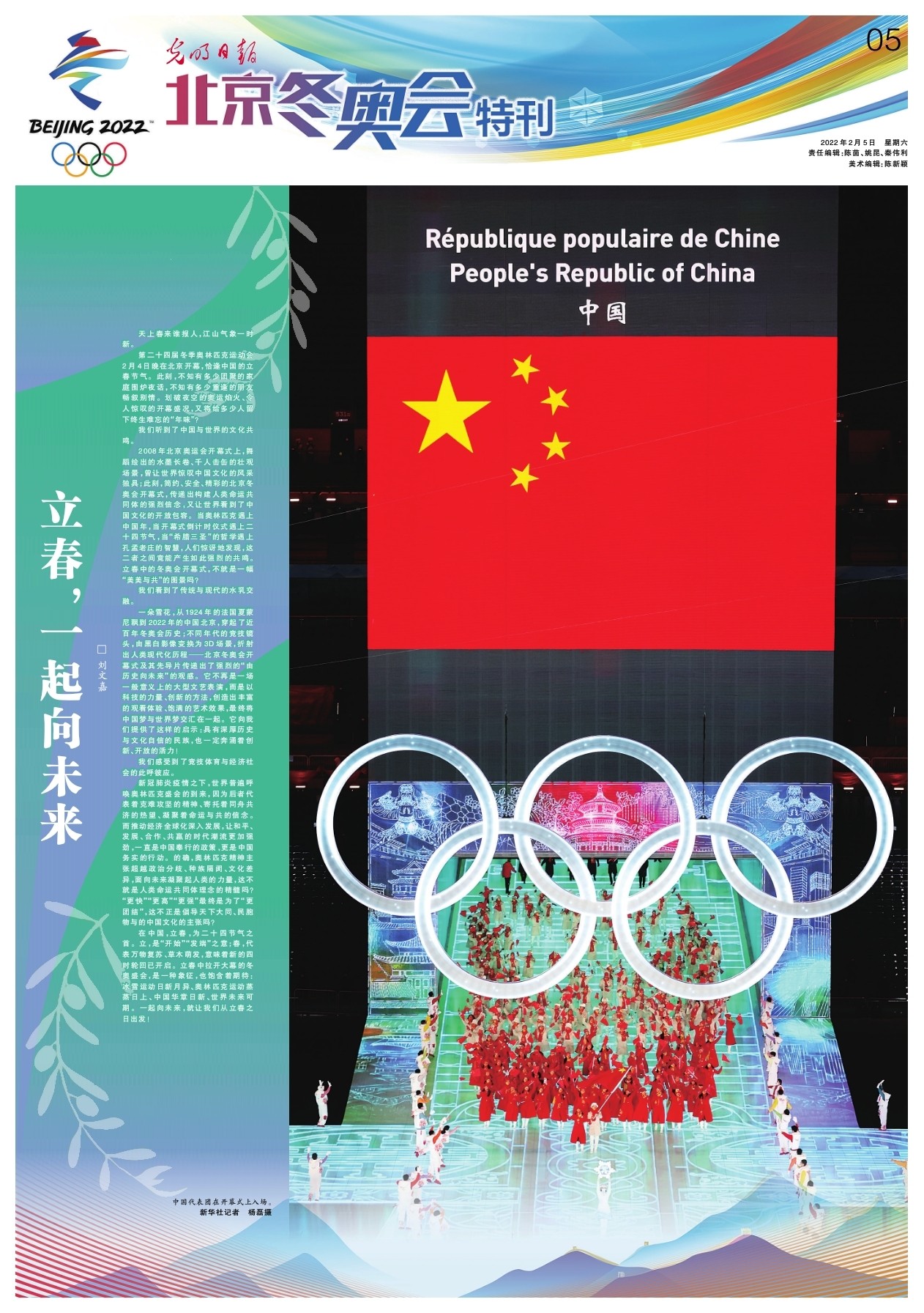 2008年北京奥运会开幕式上,舞蹈绘出的水墨长卷、千人击缶的壮观场景,曾让世界惊叹中国文化的风采独具;此刻,简约、安全、精彩的北京冬奥会开幕式,传递出构建人类命运共同体的强烈信念,又让世界看到了中国文化的开放包容。当奥林匹克遇上中国年,当开幕式倒计时仪式遇上二十四节气,当“希腊三圣”的哲学遇上孔孟老庄的智慧,人们惊讶地发现,这二者之间竟能产生如此强烈的共鸣。立春中的冬奥会开幕式,不就是一幅“美美与共”的图景吗?