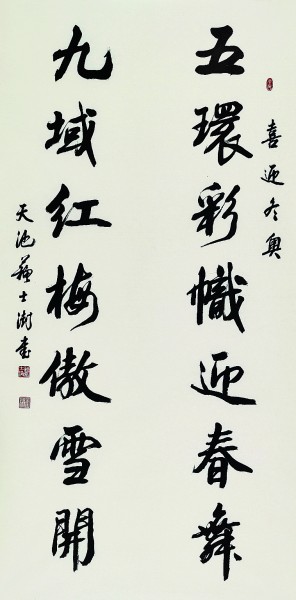 五环彩帜迎春舞 九域红梅傲雪开(书法) 苏士澍