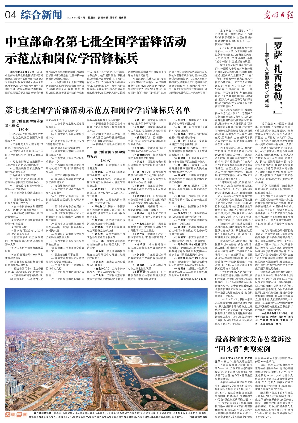 中宣部命名第七批全国学雷锋活动示范点和岗位学雷锋标兵