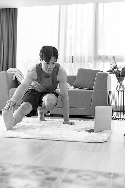 “居家健身应该穿戴整套的运动装备。”邓玖征建议,“尽量身着运动服和运动鞋,切忌图省事儿穿拖鞋、睡衣运动。这样不仅运动效果大打折扣,还容易发生意外。常规运动中的运动前热身和运动后拉伸,在居家健身中也万不可省略。”