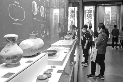 5月2日,山东省临沂市兰山区,市民在银雀山汉墓竹简博物馆参观馆藏文物。许传宝摄/光明图片