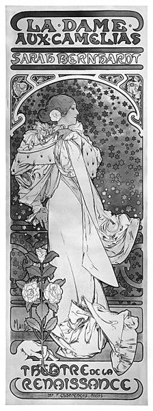 19世纪末法国政府取消演期的限制,而戏剧演期的长短可以衡量一个作品是否成功。在19世纪末,商业海报也开始大量使用石版印刷工艺,弥补了传统手绘不能批量化生产的缺陷。同时政府放松了对海报这种大众媒体的管制,因此在巴黎的大街小巷出现了艺术家们设计的各类海报。在这样的背景下,穆夏因为一张戏剧海报,职业生涯发生了戏剧性的、出人意料的转变。穆夏的艺术成功一方面是对古典艺术的创新,另一方面则有赖于现代技术。海报作为一种“复制机械时代的艺术作品”,改变了大众对艺术的反应。同时戏剧海报作为戏剧的衍生品,反过来为戏剧扩大了观众的范围——戏剧演出具有现场性,是不可复制的艺术,其观众的数量往往是有限的,然而戏剧海报的流行却提高了戏剧的大众性。