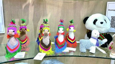 模拟参加“羊驼选美大赛”的羊驼毛制玩偶。本报记者 吴潇怡摄/光明图片