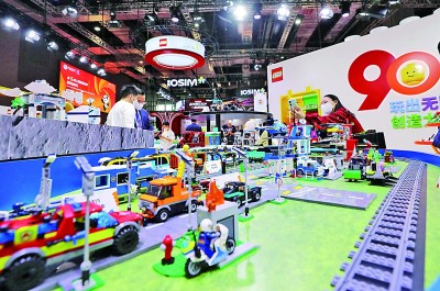 第五届进博会丹麦乐高公司的展台吸引众多参观者。新华社发