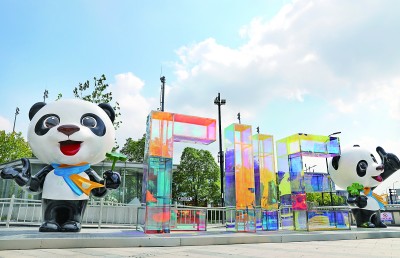 国家会展中心(上海)北入口外的进博会主题装饰。 新华社发