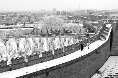 2月9日,河北省石家庄市古城正定迎来初春降雪,古城内外银装素裹,格外美丽。人们走出家门,赏雪游古城。梁子栋摄/光明图片