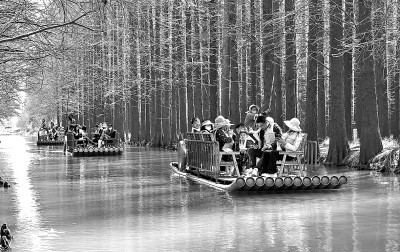 四月二日,江苏省金湖县银图镇金湖水上森林公园,游人乘坐竹筏行驶在池杉林中享受浓浓的春意。眼下正是春暖花开之时,很多人选择周末到近郊踏青,都市周边游开始升温。