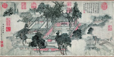 诗画艺术的同构与互动,为后世带来了一种新的文本形态,即彰显文人雅趣的诗画卷。简单地说,诗画卷是由多人针对同一幅绘画作品进行题咏而形成的诗卷。它一般形成于某个带有意味的话题,由话题的发起者邀请画家作画,并请不同文人进行题识,所用文体以诗歌居多,因此称为诗画卷。但也有人使用序、记、跋、识等其他文体,从而形成集诗文书画为一体的雅致之作。这种文本以卷轴形式存放,易于收藏和展示,典雅富有新意,且对所咏之物具有相当的开放性。诗人题跋不受时空和题材的限制,可以对画面进行描述,亦可以由话题展开想象,在文本传播过程中甚至可以因时因地进行情感抒发。一部诗画卷的流传可以绵延几十年,横跨若干代文人的情感历程,是了解文人生存方式、人生心态的重要文本。在后世著录的书画文献中,尽管原本诗画卷已经流失,但编者抄录的诗文题跋却得以保存,如明代朱存理的《铁网珊瑚》《珊瑚木难》,清代卞永誉的《式古堂书画汇考》等书,便保存了《听雨楼》《秀野轩》《破窗风雨》等诸多诗画卷。
