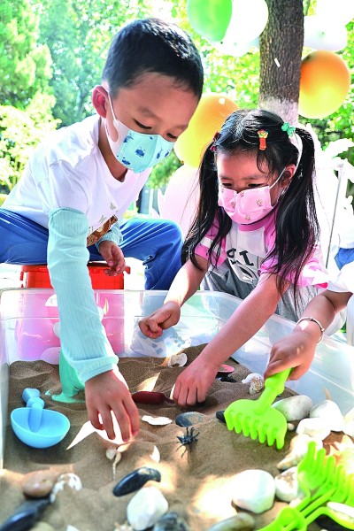 6月2日至5日,2023“婴幼儿照护周”主题宣传活动暨首都托育宣传活动在北京举行。活动以“助家庭养育 托未来希望”为主题,旨在进一步在全社会传播科学的婴幼儿照护理念,提升家庭养育的能力和幸福指数,从而更好支持婴幼儿照护行业高质量发展。该活动由中国人口文化促进会、中国儿童中心、北京市计划生育协会、健康报社共同举办。图为6月2日,小朋友们在现场参加游戏活动。本报记者 陈茵摄/光明图片