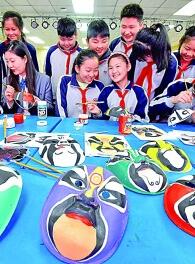 河北邯郸市丛台区连城小学的学生在绘制戏剧脸谱。郝群英摄/光明图片