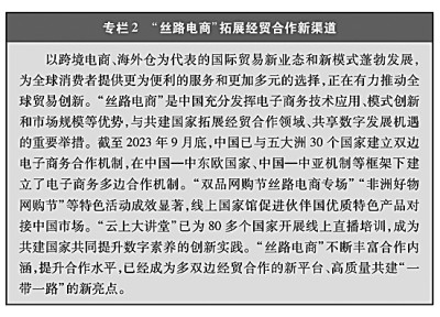 “数字丝绸之路”建设亮点纷呈。共建国家加强数字领域的规则标准联通,推动区域性数字政策协调,携手打造开放、公平、公正、非歧视的数字发展环境。截至2022年底,中国已与17个国家签署“数字丝绸之路”合作谅解备忘录,与30个国家签署电子商务合作谅解备忘录,与18个国家和地区签署《关于加强数字经济领域投资合作的谅解备忘录》,提出并推动达成《全球数据安全倡议》《“一带一路”数字经济国际合作倡议》《中国-东盟关于建立数字经济合作伙伴关系的倡议》《中阿数据安全合作倡议》《“中国+中亚五国”数据安全合作倡议》《金砖国家数字经济伙伴关系框架》等合作倡议,牵头制定《跨境电商标准框架》。积极推进数字基础设施互联互通,加快建设数字交通走廊,多条国际海底光缆建设取得积极进展,构建起130套跨境陆缆系统,广泛建设5G基站、数据中心、云计算中心、智慧城市等,对传统基础设施如港口、铁路、道路、能源、水利等进行数字化升级改造,“中国-东盟信息港”、“数字化中欧班列”、中阿网上丝绸之路等重点项目全面推进,“数字丝路地球大数据平台”实现多语言数据共享。空间信息走廊建设成效显著,中国已建成连接南亚、非洲、欧洲和美洲的卫星电信港,中巴(西)地球资源系列遥感卫星数据广泛应用于多个国家和领域,北斗三号全球卫星导航系统为中欧班列、船舶海运等领域提供全面服务;中国与多个共建国家和地区共同研制和发射通信或遥感卫星、建设卫星地面接收站等空间基础设施,依托联合国空间科技教育亚太区域中心(中国)为共建国家培养大量航天人才,积极共建中海联合月球和深空探测中心、中阿空间碎片联合观测中心、澜湄对地观测数据合作中心、中国东盟卫星应用信息中心、中非卫星遥感应用合作中心,利用高分卫星16米数据共享服务平台、“一带一路”典型气象灾害分析及预警平台、自然资源卫星遥感云服务平台等服务于更多共建国家。