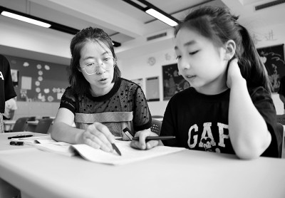 9月14日,河北雄安史家胡同小学一名老师对学生进行辅导。 新华社发