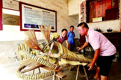 手艺人在非遗馆内制作犁狮尾巴。刘荣东摄