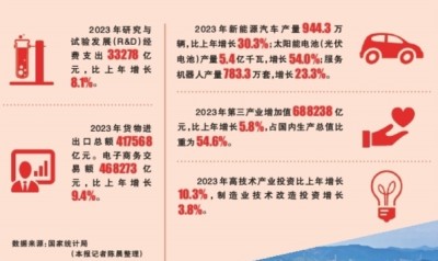 2023年高技术产业投资比上年增长10.3%,制造业技术改造投资增长3.8%。