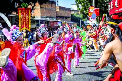 国庆假期,在广东省汕头市街头,观看潮阳文光桃园英歌队表演的市民和游客,很难不被这饱满的情绪感染。