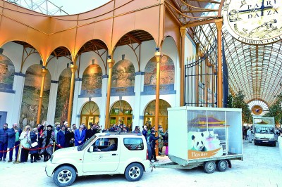 在比利时天堂动物园出生并度过童年时光的三只旅比大熊猫——“天宝”“宝弟”“宝妹”12月10日踏上回国旅程。图为人们送别启程回国的大熊猫。新华社发