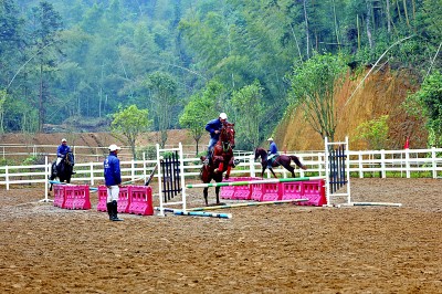 “咚咚咚……”鼓点响起,傩舞队员们头扎红头巾,戴着傩面具依次出场。在麻山镇幸福村,国家级非物质文化遗产傩舞在这里得到传承与发扬。为了准备好春节的表演,傩舞队员正忙着排练傩戏。大家头戴傩面具,持各种兵器,走叉步,时而腾空旋转,时而躬身打坐,赢得前来围观的村民们一阵阵喝彩。而在白竺乡的和平农场马术俱乐部和桐花谷景区,铺满绿茵的山峦、清澈见底的溪流,依山而建的童话树屋,还有精彩的马术表演和水上营地活动,吸引游客流连忘返。