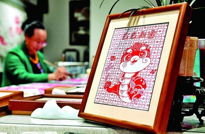 春节临近,河北蔚县剪纸国家级代表性传承人周淑英以蛇为主题,创作系列生肖蛇剪纸作品,表达对新年的祝福,迎接蛇年的到来。图为1月3日,蔚县剪纸国家级代表性传承人周淑英在河北省石家庄市新华区名家工作室制作生肖蛇作品。新华社记者 王晓摄