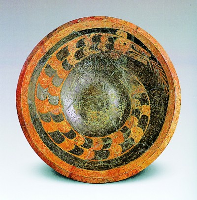 作为中华民族最具代表性的图腾,龙的形象广为人知。然而,正如闻一多先生所考证的那样,“龙”在最初本就是一种大蛇的名字,而龙具有蛇身,也能表明“龙的基调还是蛇”。国人至今都习惯将蛇称为“小龙”,更将不少龙蛇形象的作品同题并论。山西陶寺的龙山文化遗址中曾出土一件距今4000年左右的“龙盘”。在这件新石器时代的著名遗物内侧,以彩绘的方式描绘了一条卷曲的“蟠龙”。然而这条“龙”没有足,其口部还绘有锋利的牙齿与吐出的信子,这些正是蛇的特征。同时,先民们还用略带弧度的笔触,刻画出遍布蛇身的鳞纹,进一步增强了画面的写实趣味。以蛇装饰陶盘的做法,直到夏朝依然流行。现藏中国考古博物馆的鱼蛇纹大陶盆同样出土于二里头遗址,在其口沿的内侧器壁上,堆塑了一圈蛇纹。这条蛇首尾相顾、纤细灵巧,同样可被视为早期蛇崇拜的代表作。
