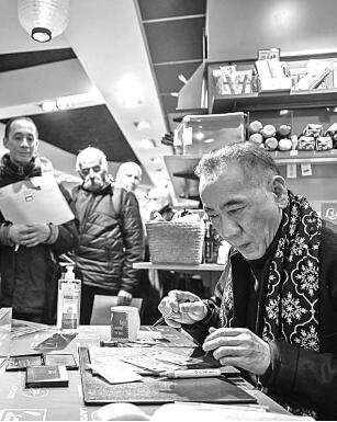 为迎接中国农历新年,法国邮政集团1月18日在首都巴黎举行中国农历蛇年生肖纪念邮票发行仪式。图为邮票设计者陈江洪为当地集邮爱好者签字留念。新华社发