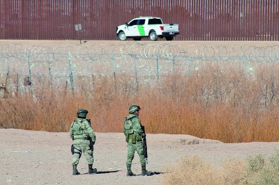 2月6日,在墨西哥奇瓦瓦州华雷斯市,墨西哥军人在墨美边境执行任务。新华社发