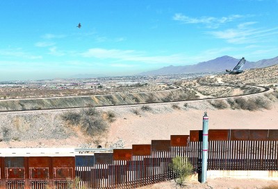 图为2月4日在墨西哥奇瓦瓦州华雷斯市航拍的墨美边境墙,墙的前侧是美国。新华社发