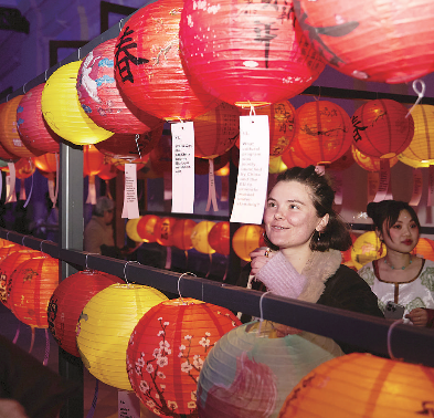 2月13日晚,一年一度的比利时布鲁塞尔灯光节如约而至,30余组创意灯光装置将这座欧洲古城装点得璀璨夺目,蛇年生肖设计大赛优秀作品、光影茶榭、“人工智能大熊猫”等蕴含中国元素的创意作品,则为灯光节增添了独特的东方风情。图为观众在布鲁塞尔皇家艺术与历史博物馆内猜灯谜。新华社发