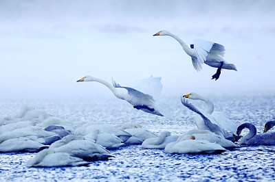 从几十只到上百只,再到成千只,大天鹅的集聚造就了“万顷湖天碧,一池雪花白”的动人景象,也让摄影爱好者、写生爱好者以及大批游客从天南海北汇聚于此,拍天鹅、画天鹅、看天鹅。