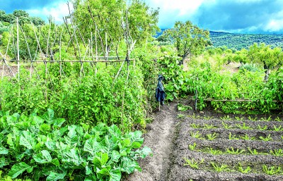 菜园地在山脚边,在堰塘边,在水井边,抬腿迈脚方便,收拾菜地方便,摘菜择菜方便。临时来了客人,主妇不慌不忙,左手挽竹筐,右手提镰刀,到菜园剜芫荽,掐荆芥,摘辣椒,拧茄子,割韭菜……或到堰塘,或上井口,随手将菜择好,就势清洗干净,归类入筐返家。主妇管一日三餐,管菜园蔬菜种植,但不管护菜园埂的事。