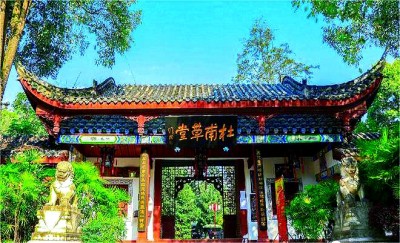 被誉为“蜀中第二草堂”的梓州“杜甫草堂”,坐落在广场左侧。其门联为清代大学者顾复初撰,郭沫若夫人于立群书:“异代不同时,问如此江山,龙蜷虎卧几诗客;先生亦流寓,有长留天地,月白风清一草堂。”