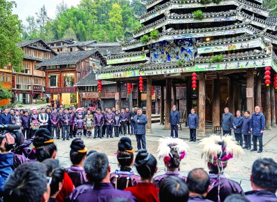 17日下午,习近平来到黔东南州黎平县肇兴侗寨考察。寨门口,身着民族盛装的村民唱起侗族大歌欢迎总书记。习近平饶有兴致地听取侗族大歌的艺术起源、曲调特点、演唱形式等方面介绍。随后,沿着村寨路道察看侗寨风貌和旅游商铺,不时驻足与店主、游客、村民互动交谈。在侗族文化展示中心,他详细了解侗族历史、风俗和服饰、建筑等特色文化保护传承情况。在侗乡特色产业基地,他观看蜡染工艺流程,对蜡染合作社坚持顾客至上、质量第一的运营理念给予肯定。习近平指出,少数民族文化是中华文化不可或缺的组成部分,既要保护有形的村落、民居、特色建筑风貌,传承无形的非物质文化遗产,又要推动其创造性转化、创新性发展,让民族特色在利用中更加鲜亮,不断焕发新的光彩。