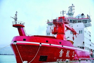 停靠在利特尔顿港的“雪龙2”号。新华社发