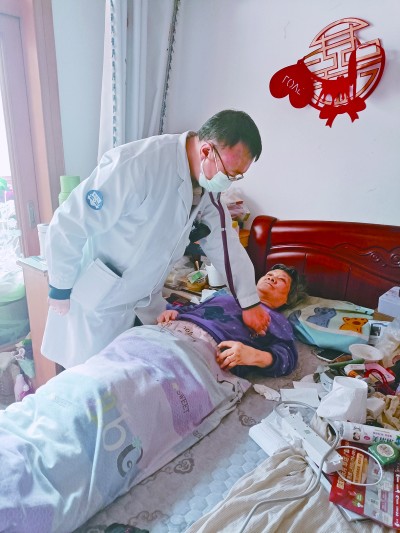 “大娘,今天感觉怎么样?”在问候的同时,太原安定医院的护士轻柔地翻开床褥,仔细查看褥疮的情况。一旁的医生边放医疗箱边说:“咱们先量个血压,看看今天的身体状况。”