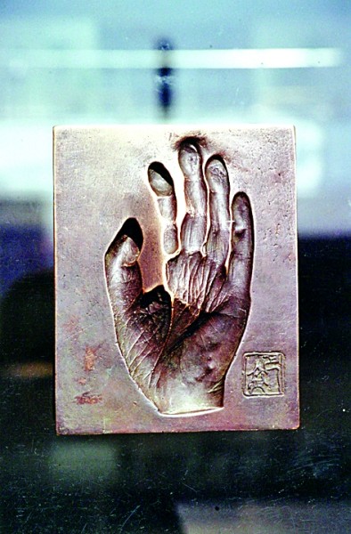 中国现代文学馆新馆以青铜铸就的巴金手模门把手。中国现代文学馆提供