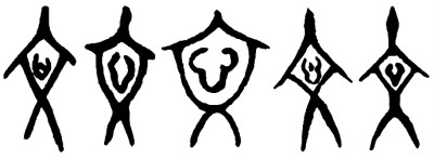 了解了文字的宗教背景,便不难理解古彝文以眼睛的象形文表达吉凶之吉的初衷了。文字为通神而创造,而通神的标志必须是通过眼睛完成对文字的识读,所以文字通神必须强调眼睛识字的作用,识字则意味着与神明相通,这使识字之眼目发展出了吉祥的意义。造字的仓颉面生四目,山西永乐宫元代《朝元图》中的仓颉甚至面生六目,都强调眼目通神的意义。四川广汉三星堆出土的青铜人像恰分两类,一类目盲无睛,首颌俯收,嘴角下垂,面容哀苦,此未通神明之貌;而另一类目明长睛,首颌仰起,嘴角飞扬,面容欢笑,甚至额前云气腾天,一副与神明沟通的喜乐之貌。《楚辞》:“尧舜之抗行兮,瞭杳杳而薄天。”描述的就是以眼目通神。