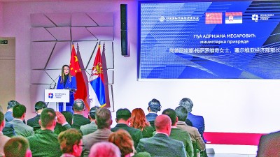 3月20日,中国-塞尔维亚经贸合作论坛在塞尔维亚首都贝尔格莱德举行。图为塞尔维亚经济部长梅萨罗维奇在论坛上致辞。 新华社发