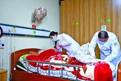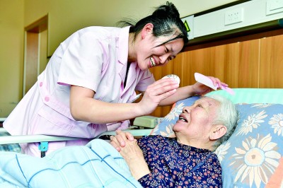 浙江省宁波市是全国首批长期护理保险国家试点城市之一。图为宁波市镇海区医护人员为失能老人提供护理服务。新华社发