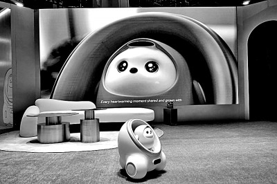 在美国消费电子展上拍摄的TCL展区的分体式AI陪伴机器人。新华社发