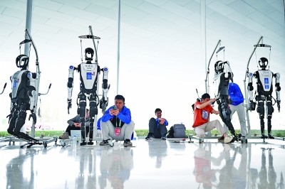 3月27日至31日,主题为“新质生产力与全球科技合作”的2025中关村论坛年会,在位于北京市海淀区的中关村国际创新中心举行。中外嘉宾将齐聚一堂,共议前沿科技与未来产业发展,共享创新思想和发展理念,共商全球创新规则和创新治理,共同推动科学技术造福各国人民。图为3月26日,工作人员在调试夸父机器人。新华社记者 陈钟昊摄