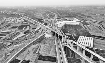 3月26日,由中铁上海局等单位负责施工的西安至延安高铁富平特大桥顺利贯通。西延高铁富平特大桥位于陕西省渭南市富平县境内,总建设长度约35.5公里,是西延高铁全线最长桥梁,为全线控制性工程。图为西延高铁富平特大桥最后一孔箱梁架设施工现场。新华社记者 张博文摄