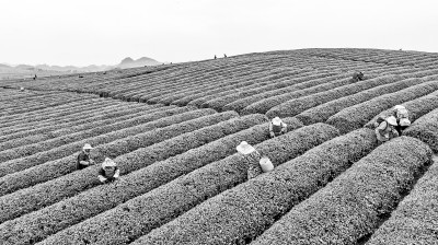 3月28日,春茶长势正盛,茶农在贵州省安顺市西秀区双堡镇银山茶场采摘明前茶,忙碌的身影与春意盎然的茶山共同构成一幅美丽的画卷。新华社发