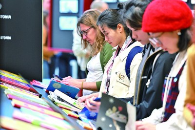 3月31日,人们在第62届博洛尼亚童书展主宾国爱沙尼亚展区阅读书籍。