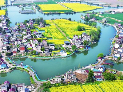 近年来,安徽省芜湖市依托生态优势,持续加强美丽乡村建设,着力提升乡村生态宜居宜业水平。图为4月1日,芜湖市湾沚区陶辛镇芮村村,错落有致的民居、蓝色的环湖步道与水系、田野等相映成趣。王玉实摄/光明图片
