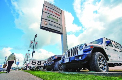 加拿大总理卡尼4月3日宣布,对美国汽车关税采取反制措施,对等征收25%关税。图为当日,车辆陈列在加拿大温哥华的汽车经销商店面外。新华社发