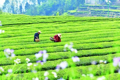 四月四日,茶农在湖北省宜昌市秭归县茅坪镇长岭村一家茶园采茶。新华社发