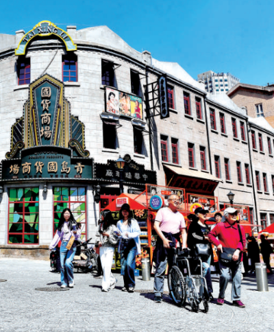 市民游客在有着百年历史的青岛中山路老商圈旅游打卡。王海滨摄/光明图片