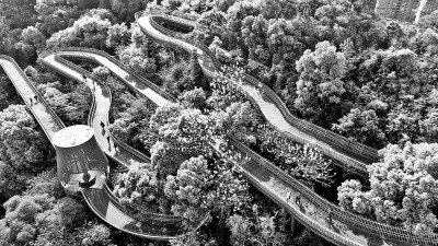 近年来,福建省福州市依托城市公园和森林资源,打造了数百公里的“福道”,串联起金牛山、金鸡山、郊野公园等多个城市公园,打造绿意盎然的城市生态环境,展现了榕城的山水融合之美。图为4月6日,福州市金牛山福道,蜿蜒曲折,春景宜人。王旺旺摄/光明图片